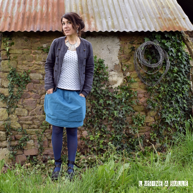 Collier Bonobo // Veste (old) La Redoute // Jupe Cyclolyse (cousue main) L'Usine à Bulle // Débardeur (old) Kiabi // Collants (old) Cache-cache // Chaussures (d'occas')Trippen // Bague (créateur) MetSilver